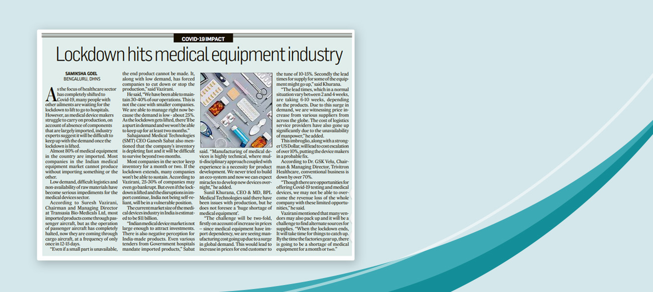 Transasia CMD Suresh Vazirani said “The medical equipment industry may struggle to keep up with demand”