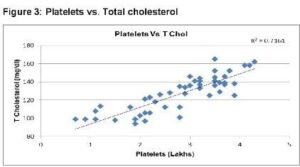 There were no differences between the two groups with regards to age and sex. The results obtained were analyzed using appropriate statistical software. Descriptive statistics were reported as mean ± Standard deviation (SD), median with a coefficient of variation. Mann Whitney U test was used to compare platelet count and serum ferritin between case and control groups. Spearman’s rank correlation was used to assess the correlation between age with platelet count, lipid profile, serum ferritin, and hospital stays. A P-value of less than 5% was considered statistically significant.